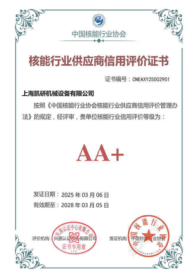 AA+核能行業(yè)供應(yīng)商信用評(píng)價(jià)證書(shū)